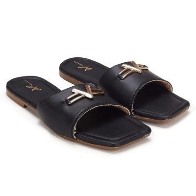 Women's Flat Slide Sandals Metal Chain Detail | Soft PU Upper | Anti-Slip PVC Sole | Comfortable Slippers Chain