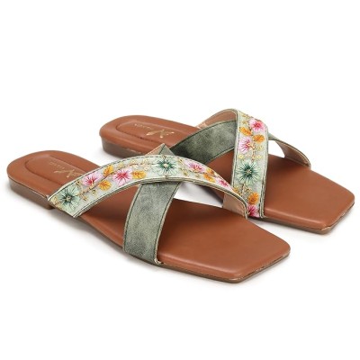 Women's Flat Slip-On Sandals with Cross Strap Leather Upper & PVC Sole Casual Daily Wear Flats for Women & Girls | women sandals | Flats Sandals