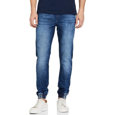 Men's Slim Fit Mid Rise Solid Mid-Rise Stretchable Denim Joggers