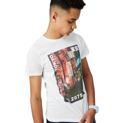 Boys Short Sleeve Off White Graphic Printed Regular Fit Tshirt for Kids Boys