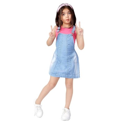 Girl's Pinafore Above The Knee Solid Denim Dress with T-Shirt