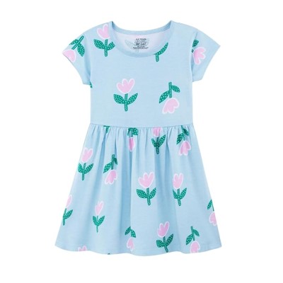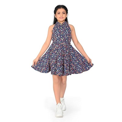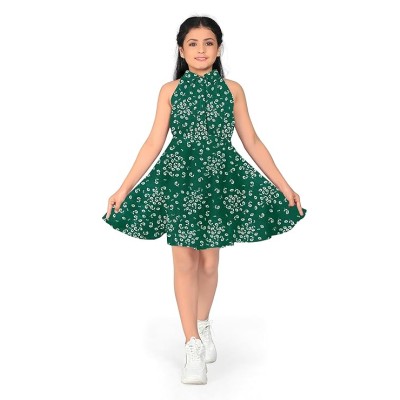 Girls Printed Round Neck Fit & Flare Dress | Cotton Knee Length Half Sleeve Girls Summer Dress for Casual Wear
