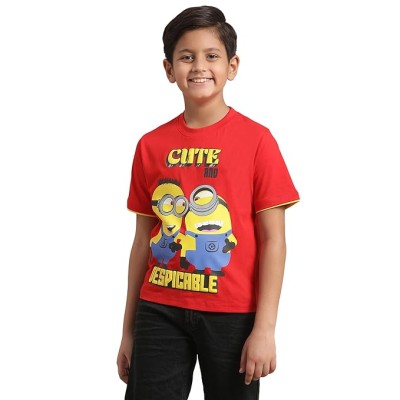Boys Short Sleeve Red Graphic Printed Regular Fit Tshirt for Kids Boys