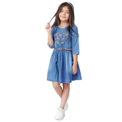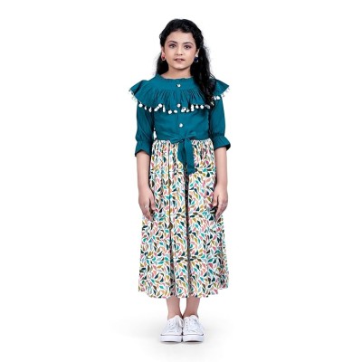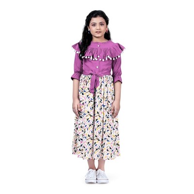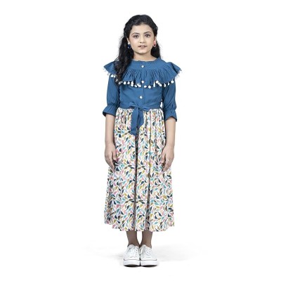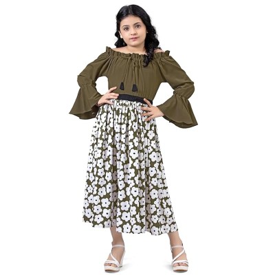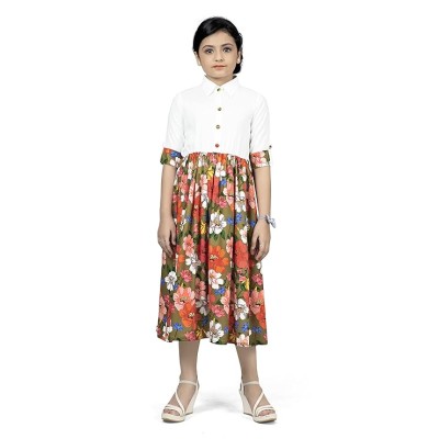 Girl's Fit And Flare Calf Length Crepe Floral Printed Dress