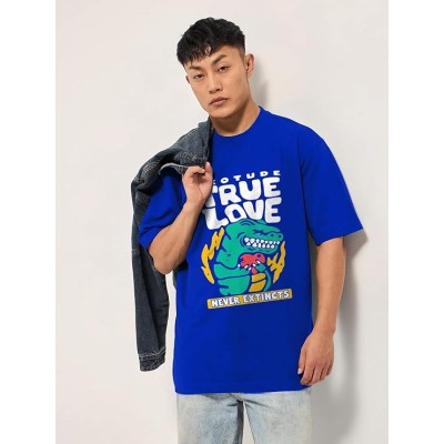 Half Sleeve Oversized Cottonblend Round Neck Drop Shoulder Printed Men's T-Shirt