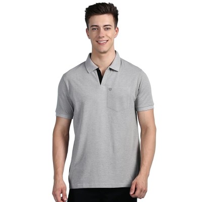 Men Solid Polo Neck Poly Cotton Grey T-Shirt