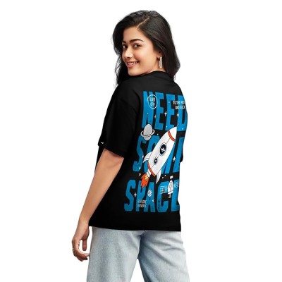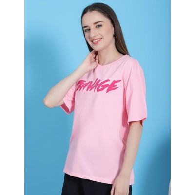 Women's 100% Cotton Graphic Print Oversized Fit Round Neck T-Shirt