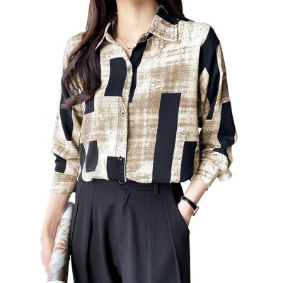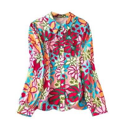 Girl's & Women's Solid Rayon Colorful Casual Fit Lapel Cardigan Shirt Colorful Flower Printed Long Sleeve Shawl Collared Open-Front Blouse Shirt for Women (Shirt 53)