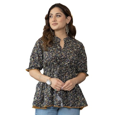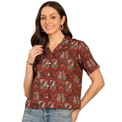 Ethnic Printed Cuban Collar Pure Cotton Shirt Style Top || Summer Wear