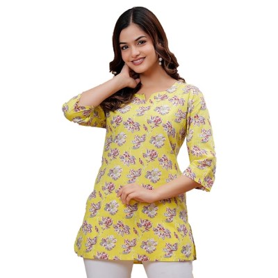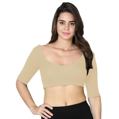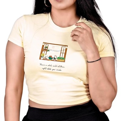 Graphic New World Theme Printed Crop Top, Slim Fit, Short Sleeves, Western Style, Super Comfortable & Breathable 100% Cotton Fabric, Crop Tops for Women - Beige