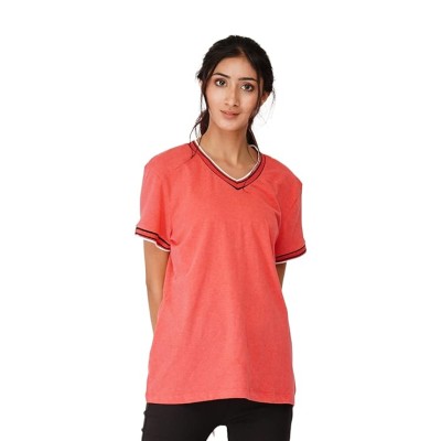 Women's V-Neck Half Sleeve Solid Casual Regular Fit Cotton Tshirt