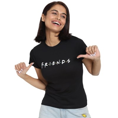 Official Friends Merchandise Women's 100% Cotton Printed Slim Fit Round Neck T-Shirt