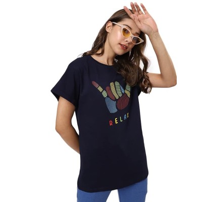 100% Pure Cotton Oversized Baggy Fit Official Disney Merchandise Cool & Goofy Graphic Printed T-Shirt for Women