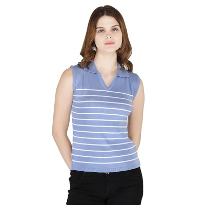 Women's Collar Sleeveless Striped T-Shirt