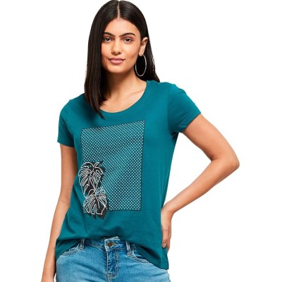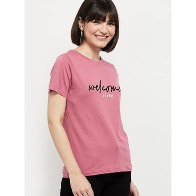 Women's Cotton Regular Fit Printed Round Neck T-Shirt