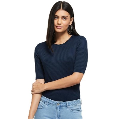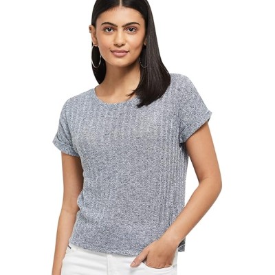 Women's Cotton Regular Fit Textured Round Neck Casual Top