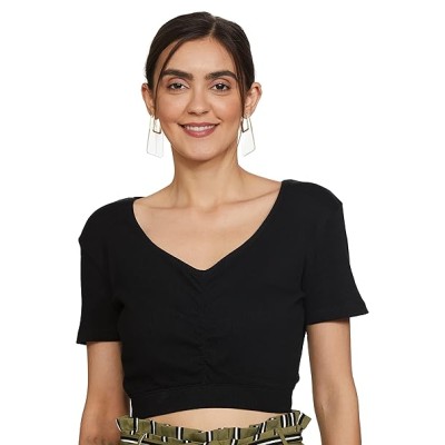 Women's Cotton Blend Regular Fit Solid Sweetheart Neck Crop Top