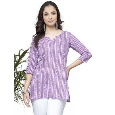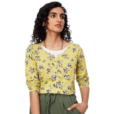 Women's Cotton Regular Fit Floral Printed Layered Neck Top