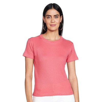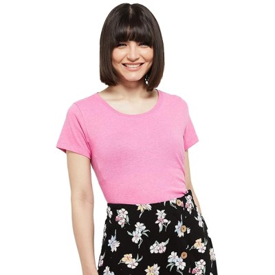 Women's Cotton Regular Fit Solid Short Sleeves Round Neck Knit T-Shirt