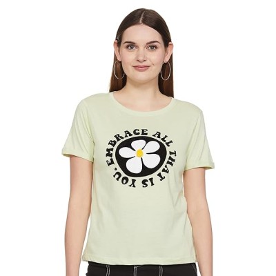 Women Cotton Regular Fit Graphic Printed T-Shirt