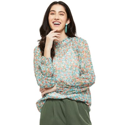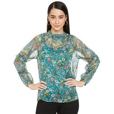 Women Polyester Floral Printed Full Sleeves Regular Fit Casual Top