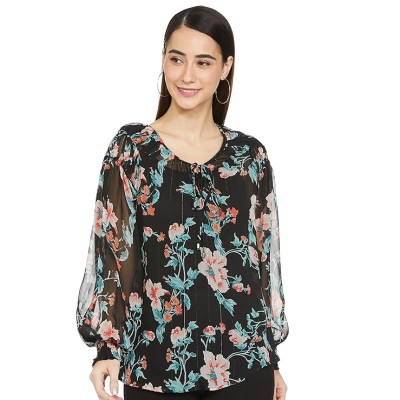 Women Polyester Printed Bishop Sleeve Regular Fit Top