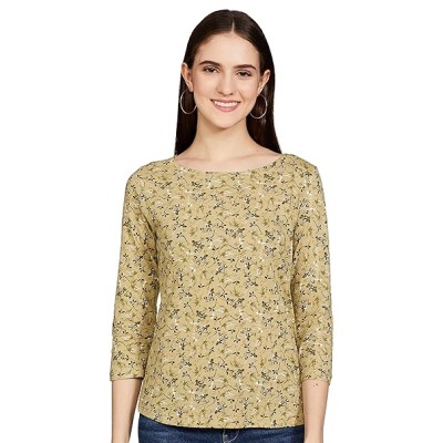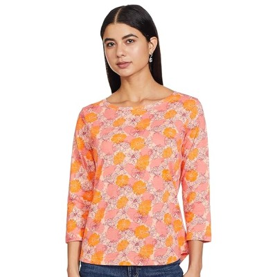Women's Cotton Regular Fit Printed Three-Quarter Sleeve Top