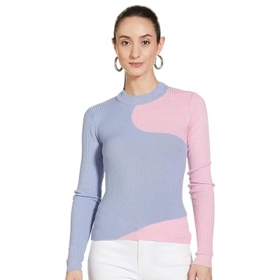 Women Solid Full Sleeves High Neck Crop Regular Fit Top