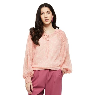 Women Polyester Printed Bishop Sleeve Regular Fit Top