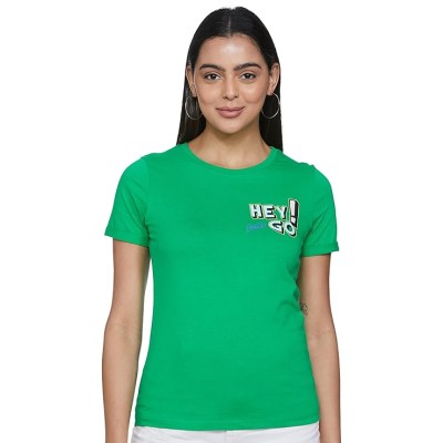 Women's Cotton Typographic Print Round Neck Regular Fit T-Shirt