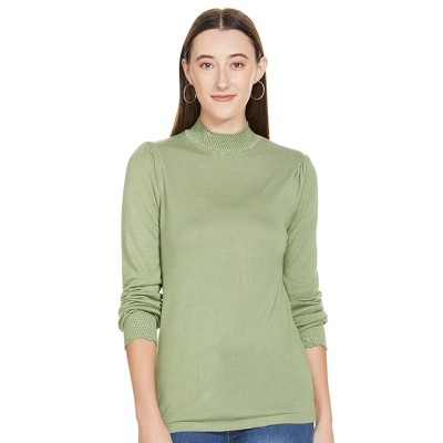 Women Smocked Mock Neck Regular Fit Top