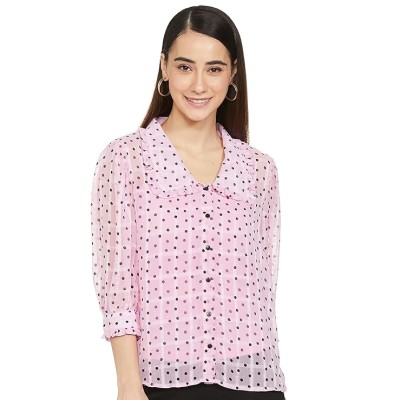 Women's Polyester Printed Extended Collar Regular Fit Top