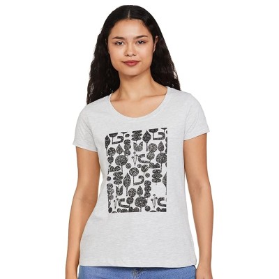 Women Printed Round Neck Regular Fit T-Shirt