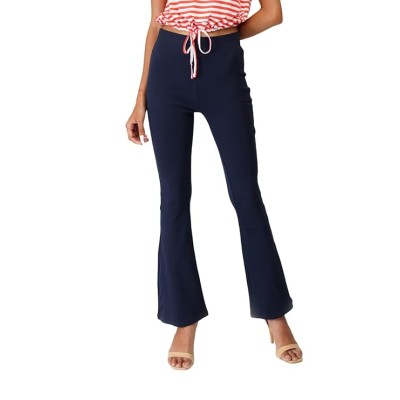 Women's Interlock Bell Bottom Regular Solid Casual Formal Wear Cotton Blend Trousers Pants