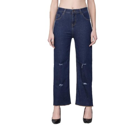 Women's High Waist Straight & Flared Fit Cotton Blend Jeans Trendy Styles